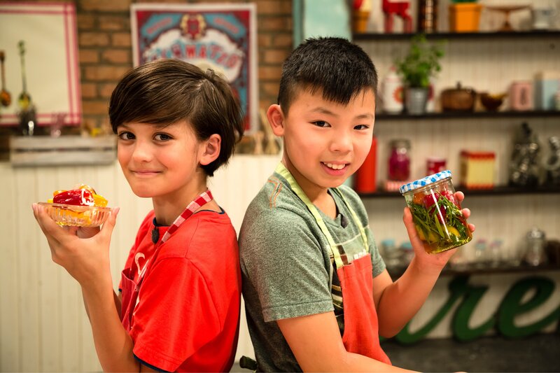 Mini-Paprika eingelegt oder nur mit Frischkäse? Ben und Felix zeigen, wie es geht. Ben mit einer Schale Mini-Paprikas, gefüllt mit Frischkäse. Felix hält ein Glas mit eingelegten Mini-Paprikas.