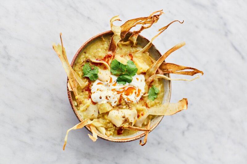 Der britische Starkoch Jamie Oliver präsentiert vegetarische Gerichte: Diesmal kocht er eine aromatische indische Pastinaken-Suppe und herzhafte fleischlose Teigtaschen aus dem Mittleren Osten.