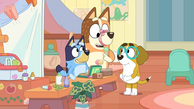 Als Bluey und Bingo mit Papa im Garten spielen, entdeckt Bingo ein Wandelndes Blatt. Sie möchte es Papa zeigen, aber dieser ist zu sehr mit dem Spiel beschäftigt, um sie zu bemerken.
