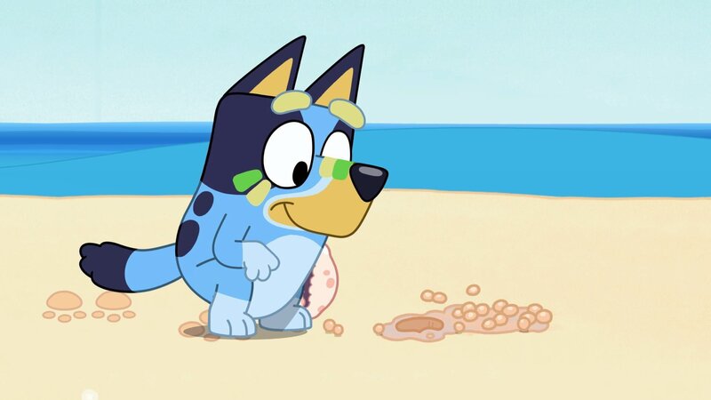 Mama geht alleine am Strand spazieren, doch Bluey möchte ihr eine Muschel zeigen und rennt ihr hinterher. Zum ersten Mal allein unterwegs, folgt sie Mamas Fußspuren und hat einige spannende Begegnungen.