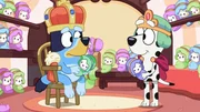 Prinzessinnen, Pferde und Zauberstäbe. Bluey und Chloe können jede Rolle spielen, die sie nur wollen, als sie sich ins Abenteuer stürzen, um ihr Spielplatz-Königreich vor der gierigen Königin zu retten.