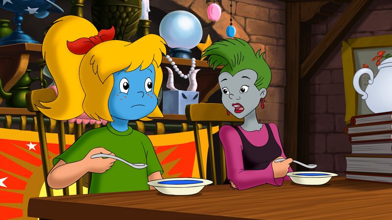 Bibi und ihre Hexenfreundinnen wollen Mania als Dankeschön ihre Leibspeise kochen: Blauschaumige Walpurgissuppe! Doch das alte Rezept von Runzia fordert die Junghexen ganz schön heraus. Die Zutaten sind schwer zu besorgen. Viel Zeit haben sie nicht bis Mania wieder zurückkehrt. Sie wähnen sich bereits am Ziel, als die Suppe im Kessel wie wild zu blubbern beginnt. Bibi und Schubia müssen in Windeseile noch die blaue Blocksberg-Distel finden.