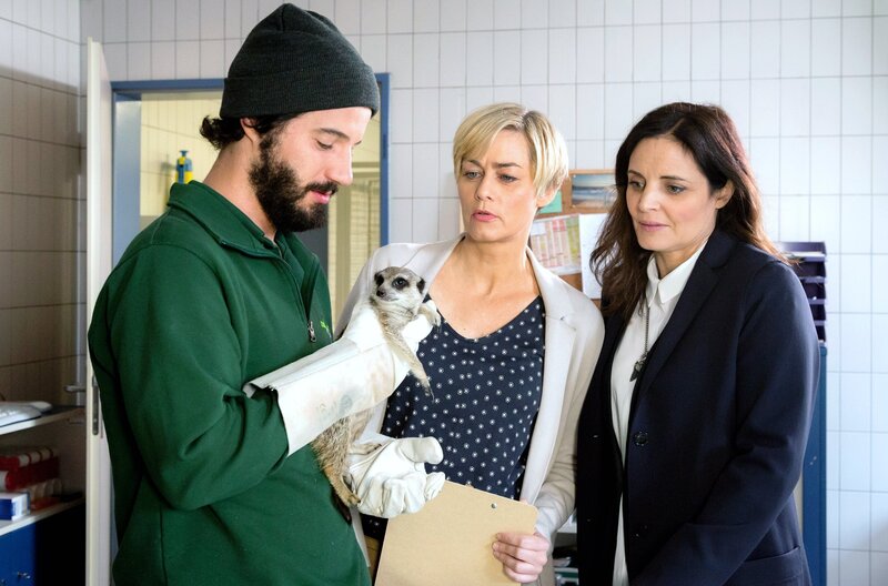 • Tierärztin Susanne Mertens (Elisabeth Lanz, rechts) hat auf dem internationalen Kongress für Zoo- und Wildtierärzte eine vielbeachtete Grundsatzrede gehalten. Ihr alter Mentor und Wiener Professor August Oberstaller (Hannes Gastinger) freut sich mit seiner früheren Lieblingsstudentin über den Erfolg – nicht ohne Hintergedanken.