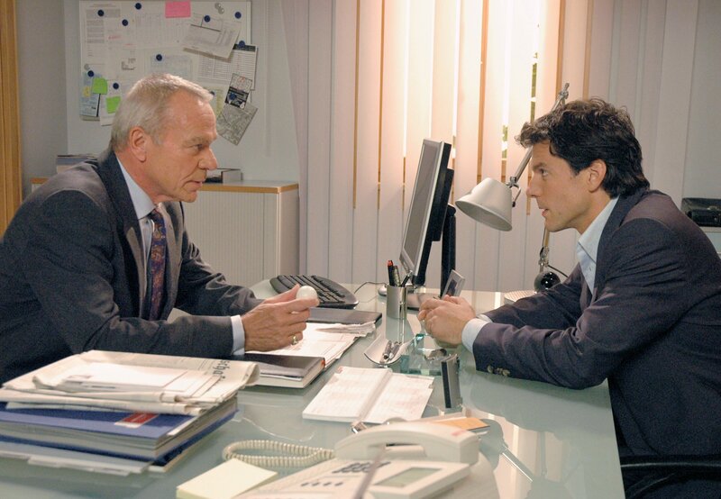• 10 Uhr im Ersten. Alexander (Gregory B. Waldis, r.) streitet mit seinem Vater Werner (Dirk Galuba, l.) über die Zukunft des Hotels.