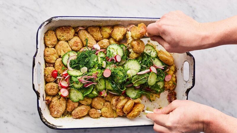 Gebratene Kartoffeln mit Gurkensalat
