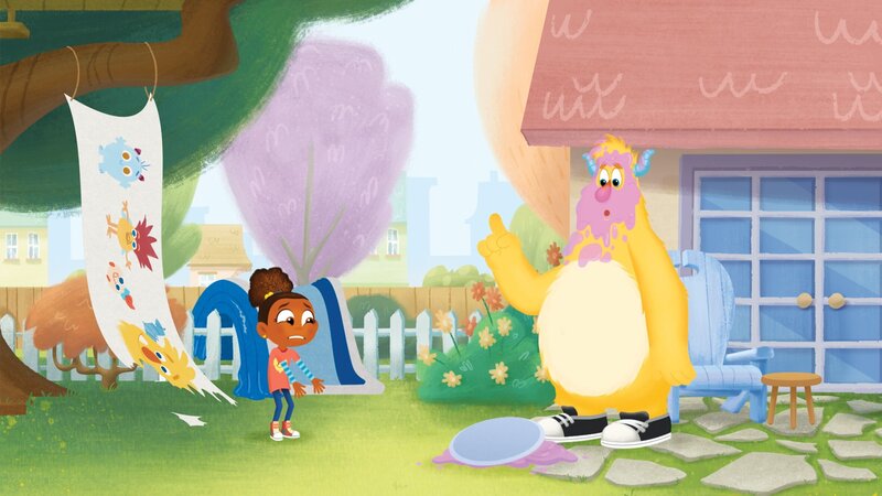 • Die Monstersitter geben ihr Bestes, Hugos Laden zu bewerben.