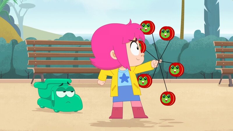 Rebecca (r.) spielt mit ihrem Jo-Jo, aber Ernest (l.) langweilt sich und meckert. Sie soll doch viel lieber mit ihm spielen.