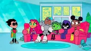 v.li.: Robin, Starfire, Cyborg, Beast Boy, Raven, Bumblebee