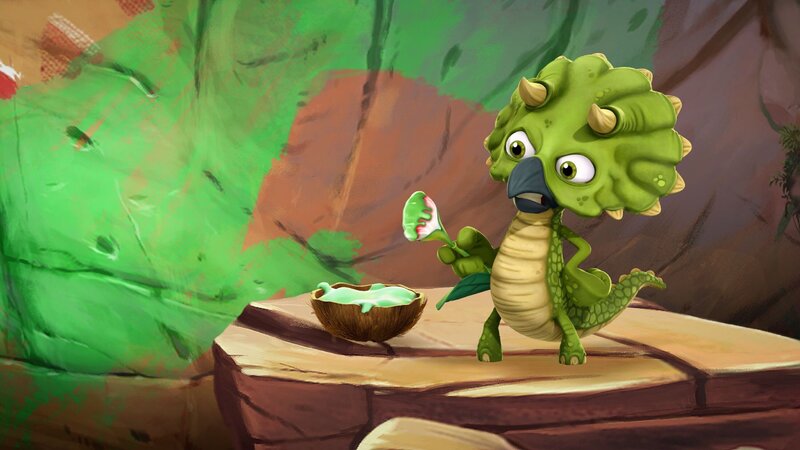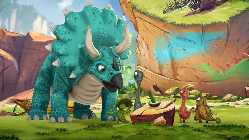 Trey (l.) ist traurig, weil niemand im Dinosaurierland mehr Respekt vor ihm hat. Können ihm die Dino-Freunde helfen?
