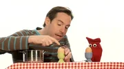 In der "Sendung mit dem Elefanten" geht es heute rund um's Ei. "You have to take the shell off." versucht David seinem Freund Red klar zu machen. Red stopft sich nämlich ein ungeschältes Ei in den Mund. Händchen wiederum würde sein Ei gerne schälen, braucht dazu aber Hilfe vom anderen Händchen. In einem Quiz gilt es ein Tier zu erraten, das auch etwas mit Eiern zu tun hat. Die Dachrinne von Nulli und Priesemuts Haus ist verstopft - was sich darin wohl versteckt hat? Außerdem bekommt Anke Besuch von Händchen: Dumm ist nur, dass es ein Ei im Mund hat und man so gar nicht versteht, was es sagen möchte. Und zum Schluss verabschieden sich Tanja und André mit einem Spiel, bei dem es darum geht ein Ei auf einem Teller zu balancieren.
