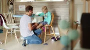 Die älteren Mädchen auf dem Spielplatz üben bei der Schaukel Weitsprung. Als Vilda endlich an der Reihe ist, fällt sie auf ihr Knie. Ihr Vater sitzt auf der Bank und telefoniert, dabei bemerkt er nichts. Vilda findet, Papa sollte sie nach Hause tragen. Das wird schwierig, weil er auch noch zwei Einkaufstüten tragen muss. Aber Vilda besteht darauf: Sie ist wichtiger als der Einkauf. Ihr Vater muss Vilda absetzen. Die Mädchen kommen ihnen entgegen und fragen, was mit Vilda ist. Vilda zeigt ihnen ihre Wunde. Aber das jüngere der Mädchen hat auch viele Pflaster. Plötzlich ist es nicht mehr so schlimm. Vilda hüpft nach Hause und dort nimmt sich ihr Vater viel Zeit, um sie zu verarzten.