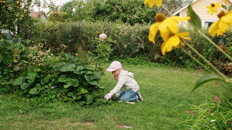 Vilda und ihr Vater besuchen Tante Eva in ihrem Schrebergarten. Während sie auf Eva warten, beginnt Vilda, nach Schätzen zu graben, weil Papa ihr erzählt, dass er als Kind welche im Garten gesucht hat. Tatsächlich findet Vilda einen altmodischen Schlüssel. Eva ist nicht entzückt, dass Vilda in ihren Beeten gegraben hat. Gemeinsam beheben sie den Schaden. Aber als Vilda Eva den Schlüssel zeigt, staunt sie nicht schlecht: Das ist der Schlüssel vom Schuppen, den sie schon so lange sucht!