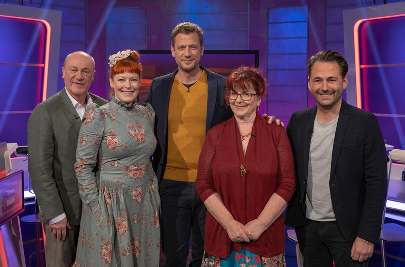 Moderator Florian Weber stellt in seinem Wissensquiz die Alltagstauglichkeit seiner prominenten Kandidaten auf die Probe. „Meister des Alltags“ spendet seinen Gewinn einem guten Zweck. v.li. Enie van de Meiklokjes, Bodo Bach, Florian Weber, Alice Hoffmann und Dennis Wilms
