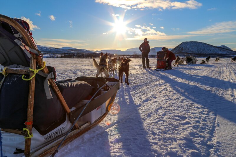Die fünf Abenteurer, die sich ihren Schlittenhundegespannen auf eine fünftägige Reise durch die unberührte Wildnis Finnlands gemacht hatten, mussten den Umgang mit den Huskys erst noch lernen. Gut, dass sie den erfahrenen Musher Juho Ylpiessia dabeihatten, der auf einer Husky-Ranch in Lappland stationiert ist. Er lehrte die Teilnehmer der Reise auch, wie man bei Minusgraden im Freien übernachtet.