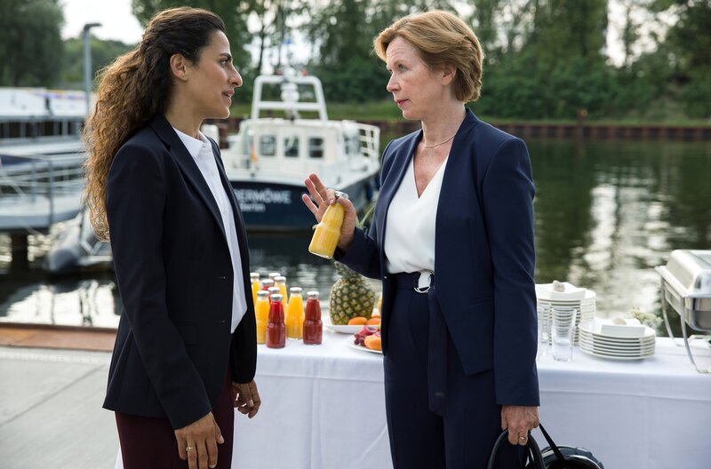 • Jasmin Sayed (Sesede Terziyan, li.) hat alles für den Besuch der Polizeipräsidentin Alexandra Falkenbach (Marion Kracht, re.) im Revier vorbereitet.