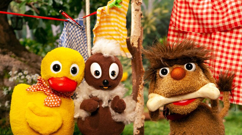 Der Erschrecker-Streit Schnatterinchen und Pitti erschrecken Moppi, der daraufhin beleidigt ist und nicht mehr mit den Freunden reden will. Um ihn umzustimmen, holen die beiden Käsekuchen für ihn. Als sie damit zu Moppis Tonne zurückkehren, erschreckt er sie ebenfalls furchtbar und alle drei vertragen sich wieder.