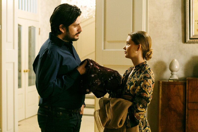 Nathalie (Amrei Haardt) serviert Maximilian (Francisco Medina) souverän ab.
