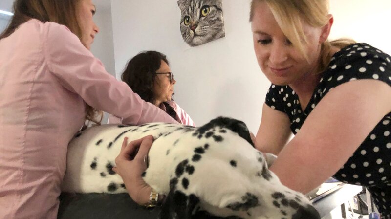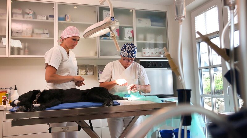 • Der 12-jährige Spike hat einen Kreuzbandriss. Ob er überhaupt operiert werden kann, will Dr. Marion Link herausfinden.