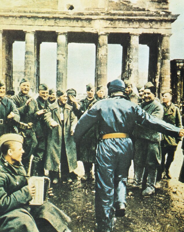 • Rotarmist am Brandenburger Tor im Mai 1945.