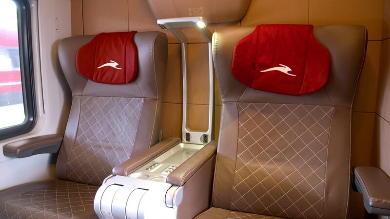 Ein Kinowagon und Bordbistros machen die Reise in dem komfortablen Zug für die Fahrgäste kurzweilig.