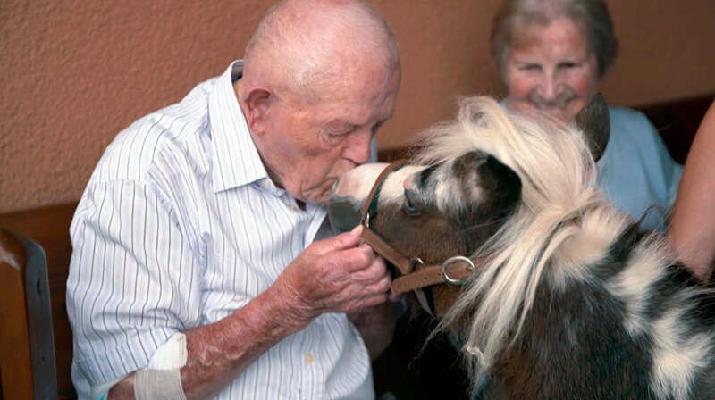 Ein Küsschen ist die beste Therapie. Miniaturpferd Eclipse kuschelt heute mit Bewohnern eines Seniorenzentrums.