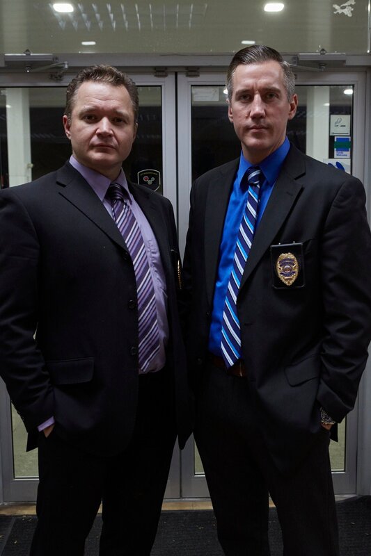 • Detective Minter (l.) und Sergeant Young stehen im Country Grocery Store.