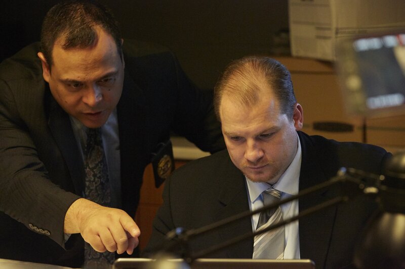Drama-Rekonstruktion: Detektiv Edgar Elizondo und Detektiv Nathan Gallop sehen sich Überwachungsvideos an.