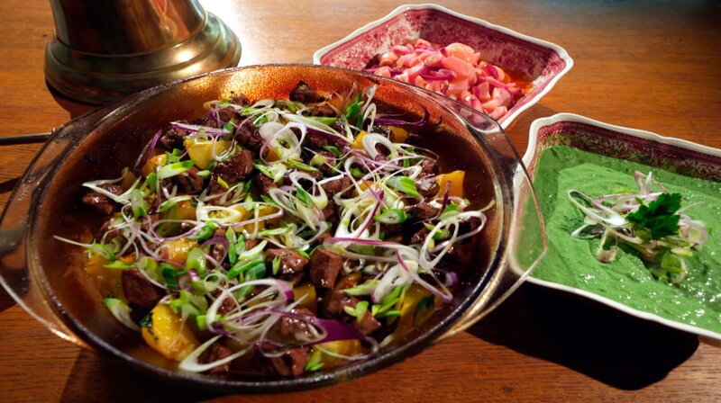 Heute fordert die Kapitänin Bianka Rössler Ali Güngörmüs heraus. Die Unternehmerin betreibt in Assmannshausen vier Fahrgastschiffe. Der Riesling vom Rhein ist dem Spitzenkoch ein Begriff, nicht aber das Menü der Gastgeberin. Bianka bereitet eine schlichte Rieslingsuppe und "falscher Dippehas" aus Fleischwürfeln und Leber zu. Das Rezept stammt aus einem alten Familienkochbuch. Was macht Ali daraus?...