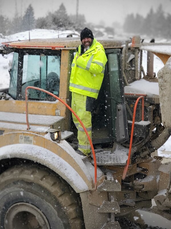 • Casey morgan standing on the rock truck covered in snow
