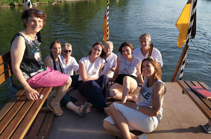 Banater-Schwaben-Familie, Bootseigner und Autorin (li.) auf der Ulmer Schachtel in Ulm. wr