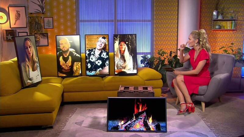 • V.l.: Jacky, Diogo, Calvin, Pia und Moderatorin Angela Finger-Erben. Die Verwendung des sendungsbezogenen Materials ist nur mit dem Hinweis und Verlinkung auf TVNOW gestattet.