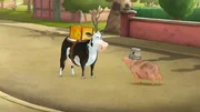Der Kuh Lieselotte passiert ein Missgeschick. Wegen ihr landet ein Huhn mit dem Po im leeren Honigtopf der Bäuerin und klebt fest. Ob dabei ein ganzer Bienenschwarm eine Hilfe ist? Als Lieselotte das Summen der Bienen hört, flüchtet sie mit dem Huhn im Topf, und eine wilde Verfolgungsjagd über den ganzen Hof beginnt. Sie endet mit einem Bad im Matsch der Schweine. Der Matschgeruch vertreibt die Bienen, lockt aber Fliegen an.