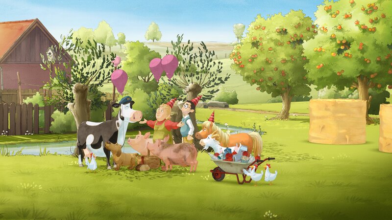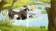 Lieselotte betrachtet neugierig die Urlaubspost des Postboten und beschließt: Urlaub will sie auch machen! Schnell packt sie all ihre sieben Sachen zusammen und verlässt den Hof. Die Bäuerin und die Tiere wollen Lieselotte zurückhalten. Doch nichts kann sie von ihren Plänen abbringen. Sie schafft es immerhin bis zur Wiese gegenüber. Ausgerechnet an diesem Tag feiern sie zu Hause ein Fest. Lieselotte kommt ins Grübeln.