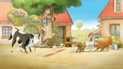 Die Kuh Lieselotte findet es aufregend, dass der Hofhund bei einem Freund übernachtet. So eine Übernachtung woanders möchte Lieselotte auch. Nur bei wem soll sie übernachten? Lieselotte beschließt, beim Postboten zu übernachten. Der staunt zunächst nicht schlecht, als zu nächtlicher Stunde die Kuh in seinem Haus steht. Aber schließlich baut der Postbote der Kuh ein Bett auf. Doch dann bekommt Lieselotte Heimweh.