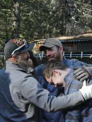 • Bailey, Jeromy und Angela Jackson umarmen Matt Raney.
