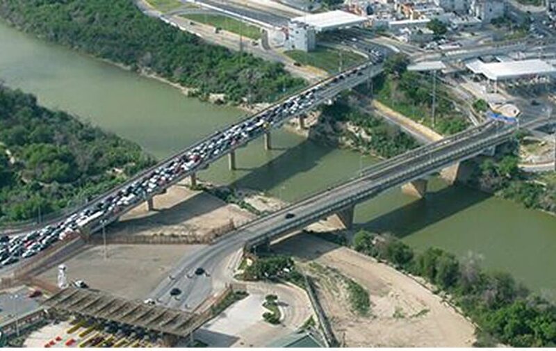 An der Hidalgo Bridge, welche den Rio Grande überquert, grenzt der US-Bundesstaat Texas an seinem südlichen Nachbarn Mexiko. Hier versucht ein Mexikaner die Grenze zu überwinden.