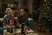Während sich Sheldon Gedanken macht, was er Penny (Kaley Cuoco, l.) zu Weihnachten schenken kann, ist Leonard (Johnny Galecki, r.) überhaupt nicht begeistert, dass sie mit einem neuen, gutaussehenden Physiker (Michael Trucco, M.) anbandelt ...