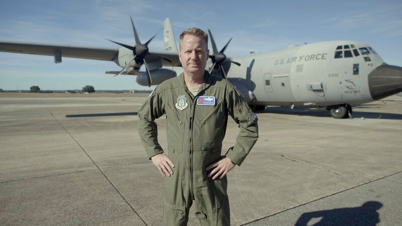 Sean Cross mit einem Flugzeug der US Air Force. (National Geographic/Tom Kirkman)
