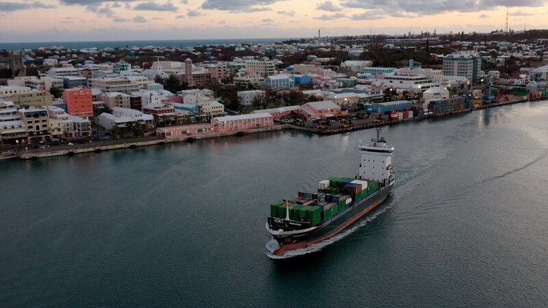 Die MV Somers Isles verlässt Port Hamilton, bevor der Hurrikan Humberto auf die Bermudas trifft.