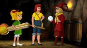 Barbara Blocksberg (M.) freut sich, ihre eigene Hexkugel wiederzubekommen.