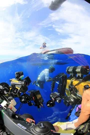 In der japanischen Suruga-Bucht wagt ein Forscherteam unter der Leitung der Wissenschaftler Tanaka und Fujiwara eines der größten Tiefseeexperimente des Jahrhunderts. Dafür benutzen sie mit modernster Technik ausgestattete Tauchboote und den Kadaver eines Wals, der einige Jahre zuvor an den Strand gespült worden war und genau die richtige Größe hatte, um in einem Kühlcontainer konserviert zu werden. Als erstes Experiment seiner Art in der Geschichte der Meeresforschung wird das Unternehmen von Meeresbiologen der ganzen Welt aufmerksam verfolgt. Nachdem sie den Walkadaver ins Meer geworfen haben, begeben sich die Forscher in den Tauchbooten in die Tiefe und beziehen ihren Beobachtungsposten. Zuerst kommen Grubenaale und eher kleine, langäugige Tiefseehaie herbei. Dann filmt die Kamera die verschiedenen Kreaturen, die sich an dem Walkadaver gütlich tun wollen: Japanische Riesenkrabben, Riesenasseln, Kragenhaie und einige andere Arten gemeiner Tiefseehaie. Doch die Haut des Wals ist zu dick, um durchgebissen zu werden. In den Meeresschluchten wimmelt es von exotischen Haien. Der seltenste unter ihnen ist der rätselhafte Riesenmaulhai. Trotz seiner enormen Körperlänge wurde er erst vor 36 Jahren entdeckt. Um den Walkadaver besser beobachten zu können, löschen die Taucher ihre Lampen und benutzen ein spezielles Kamerasystem, das auch im Dunkeln filmen kann. Ein Koboldhai mit seltsam geformtem Kopf und schnabelartigem Maul schwimmt in ihr Blickfeld. Zum Angreifen seiner Beute schiebt dieser Hai seine Kiefer vor wie ein Alien aus einem Hollywoodfilm. Aber auch er kann die dicke Haut des Wals nicht bezwingen. Bei einem gefährlichen Nachttauchgang sehen die Forscher, wie ein vier Meter langer Stumpfnasen-Sechskiemerhai seine kräftigen Kiefer in der Walhaut versenkt und sie mit einer geschickten Körperdrehung vom Kadaver reißt. Jetzt ist der Schmaus eröffnet und dauert so lange an, bis nur noch das riesige Gerippe übrig ist. Und auch dieses findet in den Knochenfresser-Würmern dankbare Abnehmer.