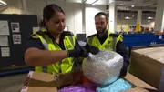 Im Postzentrum am Flughafen Perth ist viel los. Heute wird der Drogenspürhund Vulcan eingesetzt, um illegale Substanzen aufzuspüren, die oft per Post versandt werden. Ein Paar macht sich verdächtig.