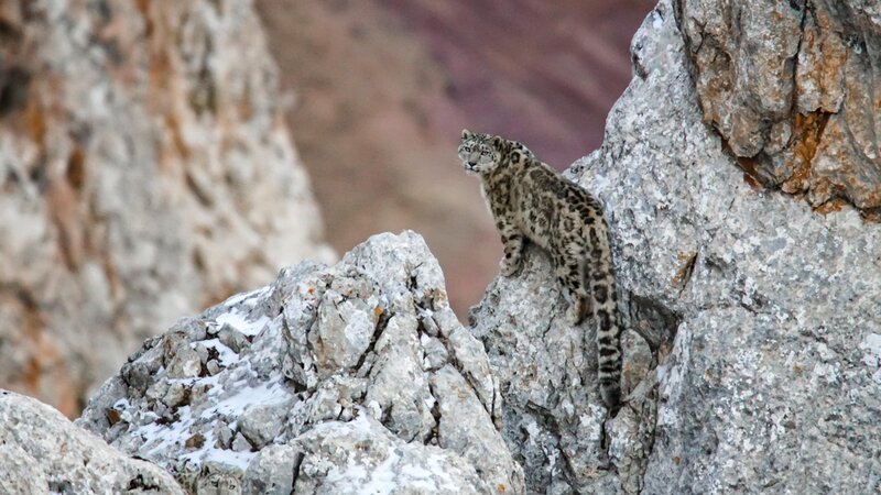 Das tibetische Hochland ist die Heimat des extrem seltenen Schneeleoparden. Die Großkatze streift wie ein Geist durch diese entlegene Bergwelt