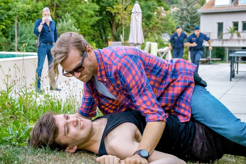 • "Soko Donau", "Freier Fall." Penny und Franziska joggen, es fällt ein Schuss; Teenies mit Black-out, bester Freund Paul tot. Im Bild (v.li.): Michael Steinocher (Simon Steininger), Stefan Jürgens (Carl Ribarski).