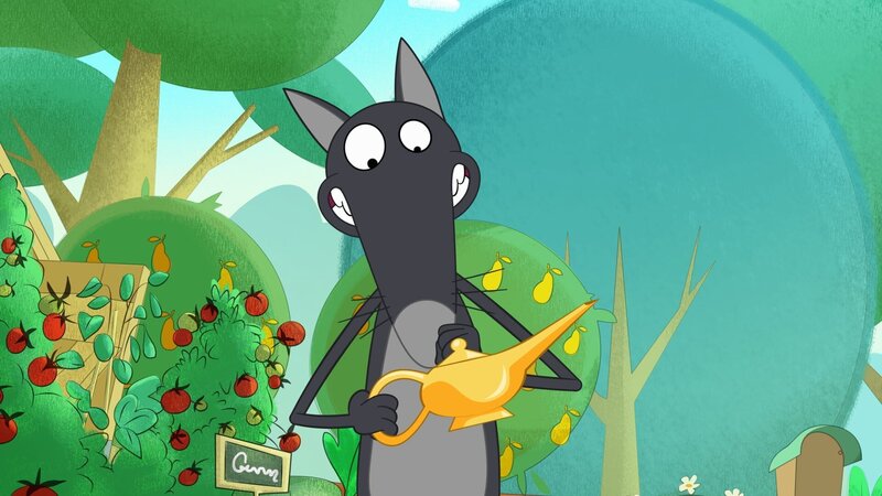 Ein Windstoß weht Wolfines Hut davon. Wolf begibt sich sofort auf die Suche nach ihm. Doch statt des Hutes findet Wolf eine alte Öllampe, die aussieht wie Aladdins Wunderlampe. Aus Spaß reibt Wolf daran und wünscht Wolfines Hut herbei. Und tatsächlich befördert ein zweiter Windstoß den Hut zurück auf Wolfines Kopf. Fortan will Wolf als Lampengeist Wünsche erfüllen. Oder war die Zauberei nur Zufall?