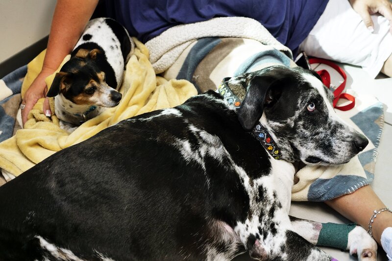 Dexter’s brother Gizmo keeps him company while they wait for Dr. Blue