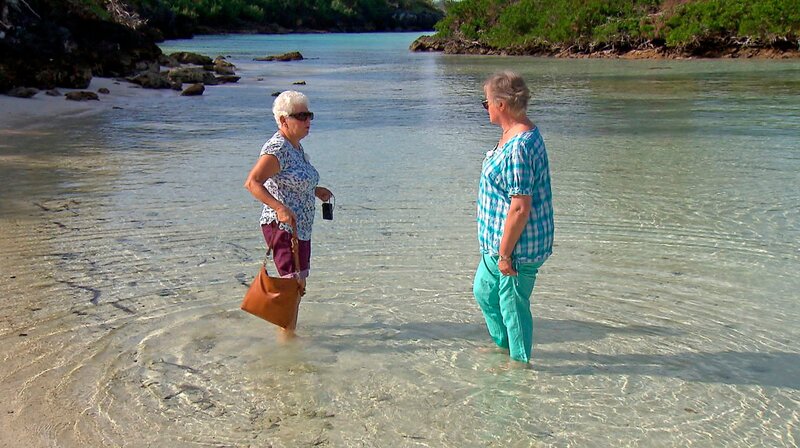 Bei Windstärken von acht bis neun kämpft sich das kleine Kreuzfahrtschiff durch die raue See Richtung Bermuda. In Hamilton, der Hauptstadt der Inselgruppe, sind die Strapazen der Fahrt aber schnell vergessen. Bei türkisfarbenem Wasser, warmem Sand und sommerlichen Temperaturen fühlen Heidrun und Barbara sich wohl. Sie entdecken die Insel mit Guide Larry, der sie in die Stadt St. George begleitet.
