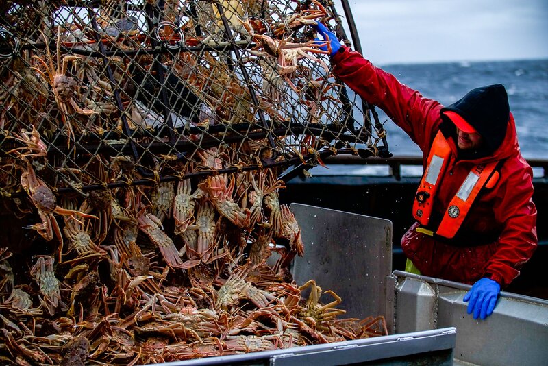The Cornelia Marie pulls up another big pot of opies and dumps them onto the table.