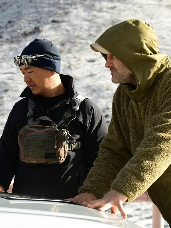 • Ky Furneaux and Ed Stafford having a briefing with Teddy.