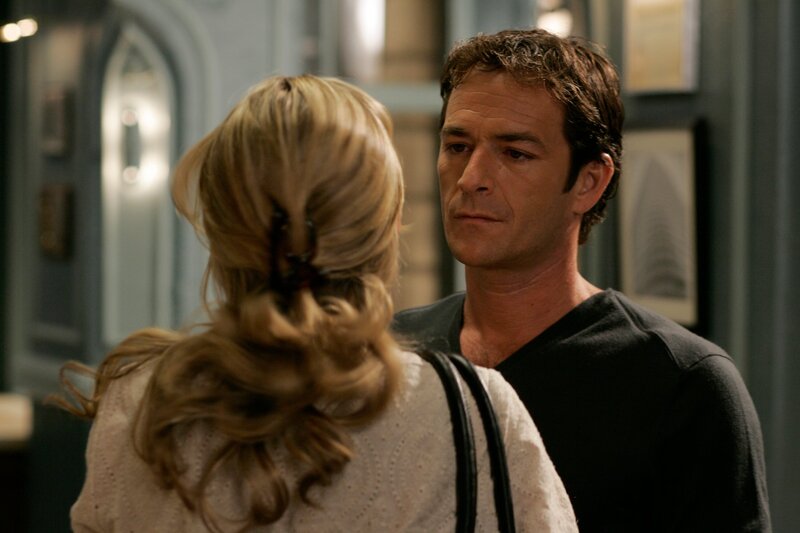 (l-r) Julie Bowen as Gwen Sibert, Luke Perry as Noah Sibert